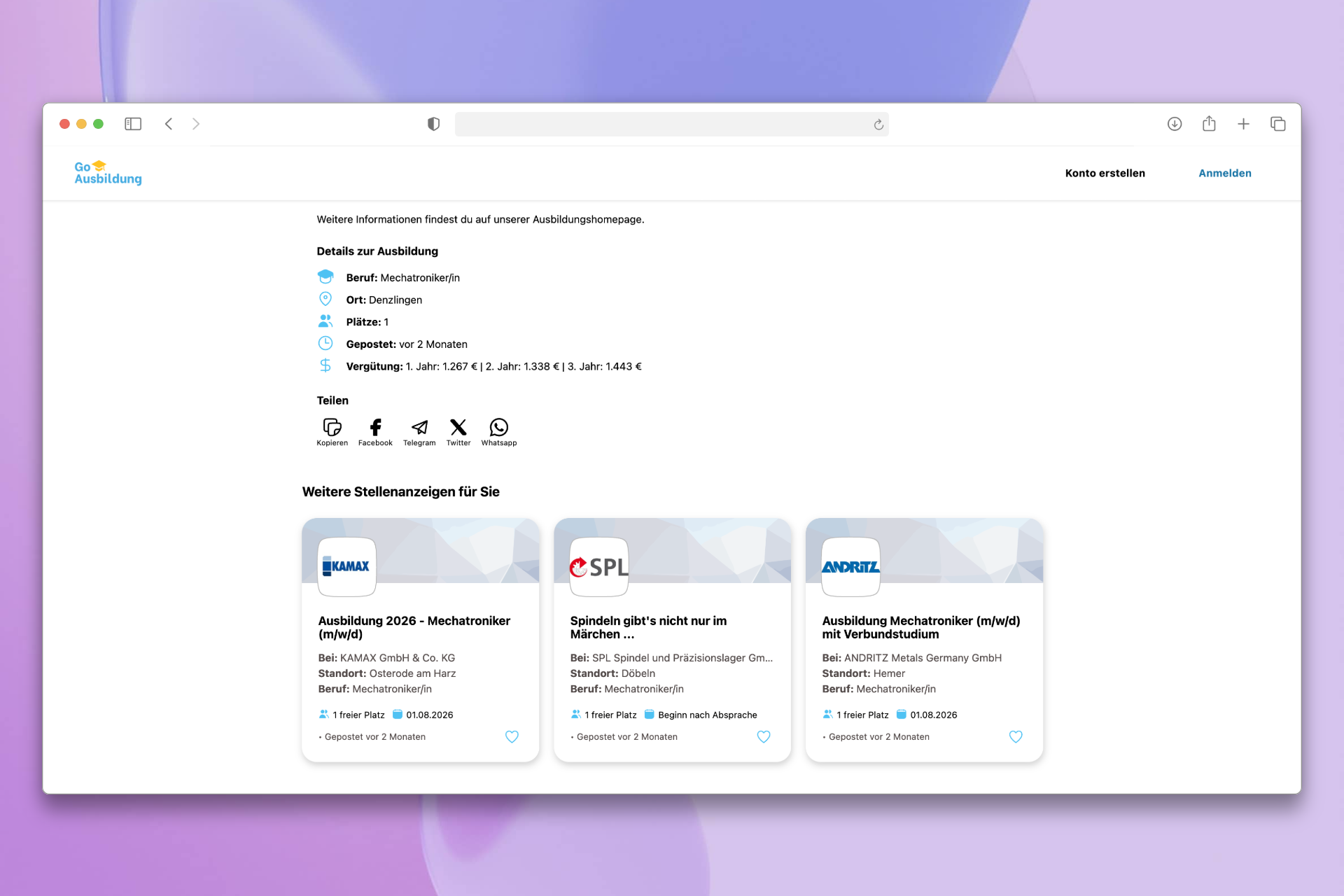Employers can publish Ausbildung positions quickly and easily. The clear presentation ensures that listings are easier to find and understand.